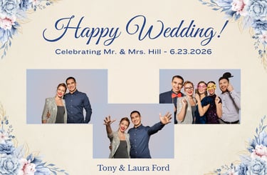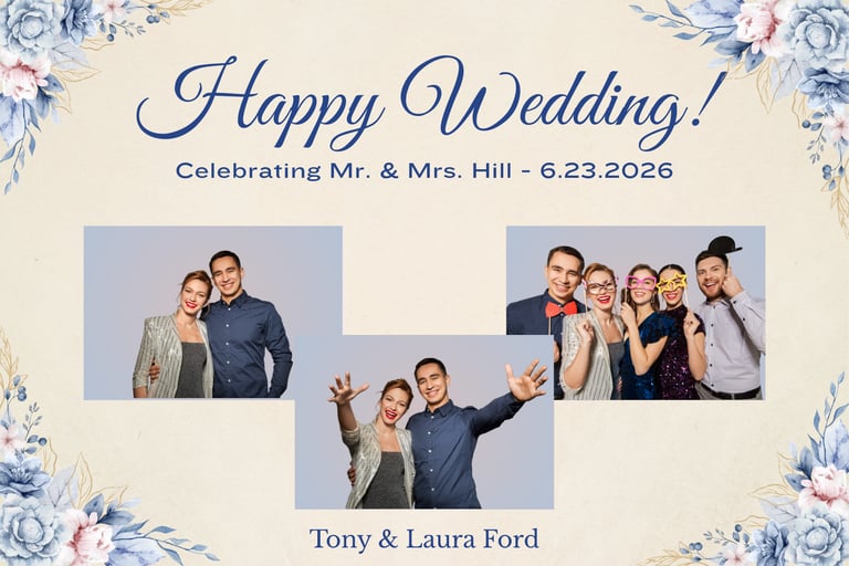 Instantly create memorable themed wedding photos with your guests and wedding details without hassle.