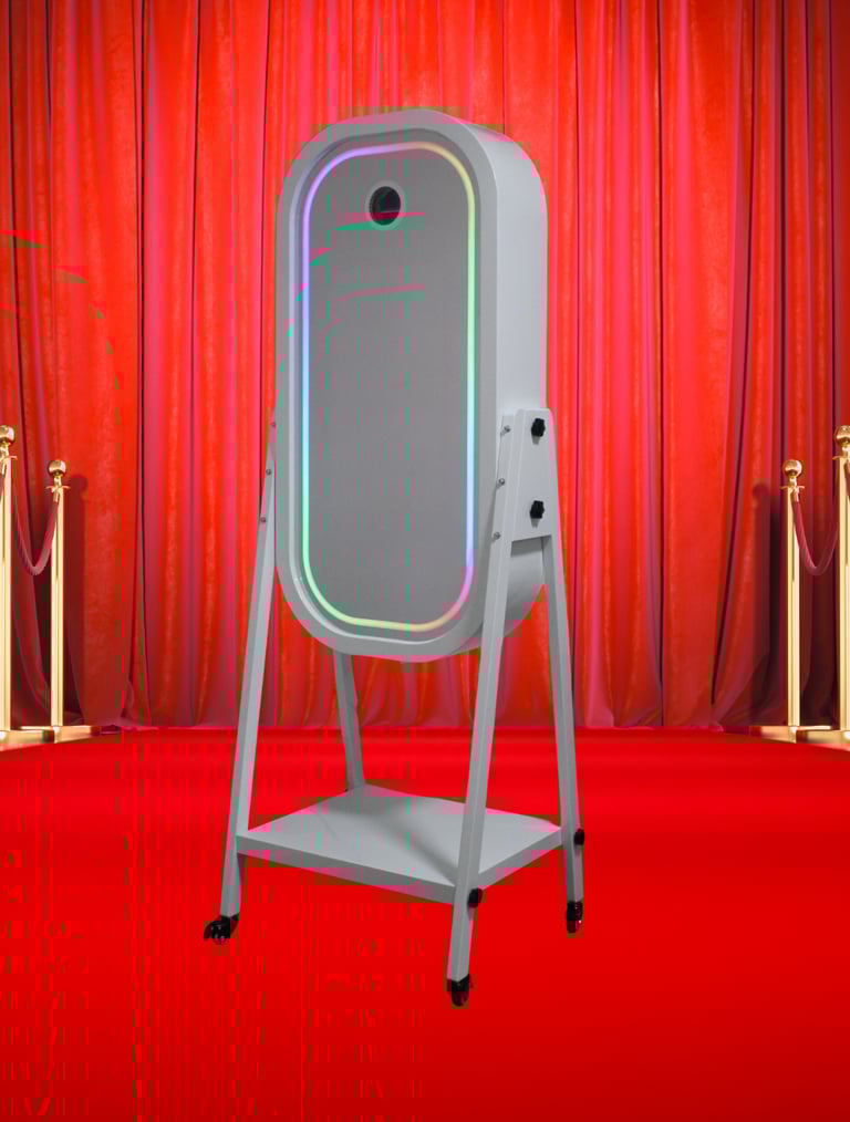 Interactive mirror booth with fun animations and prints.